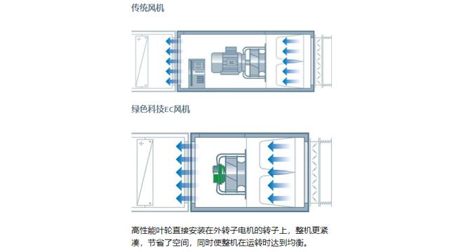ahu空調(diào)新風(fēng)機(jī)組采用的是綠色科技的EC離心風(fēng)機(jī),其控制電子和電機(jī)集成于一體,不但節(jié)省空間,而且還簡化了安裝。EC風(fēng)機(jī)使用了可用于換向和控制的集成電子系統(tǒng)替代外部變頻器。此外,電機(jī)和控制電子之間巧妙協(xié)同,因此無需使用額外的電子濾波器和屏蔽電纜,也不需要外部電機(jī)保護(hù)開關(guān)。EC風(fēng)機(jī)能夠有效節(jié)省組件之間高昂的匹配調(diào)試費(fèi)用,無需接地和屏蔽。即插即用就是這么簡單。