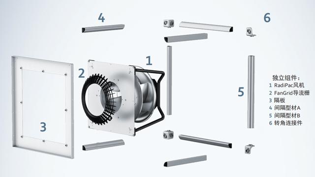 ahu新風機組是由EC離心風機組成,而EC離心風機主要是由離心風機、導流柵、隔板、間隔型材、轉角連接件組成。其中導流柵能夠有效降低噪音,避免安裝引起的湍流,并且設計緊湊、安裝便捷,具有堅固的設計;而離心風機是通過嚴苛測試的支架支撐,設計極其緊湊、能效較高、傳熱性低、噪音低、免維護且運行安全、具有無級調速功能;間隔型材采用的是創新材料設計,強度高、材質輕、尺寸靈活、通過了空氣動力學優化的外形。